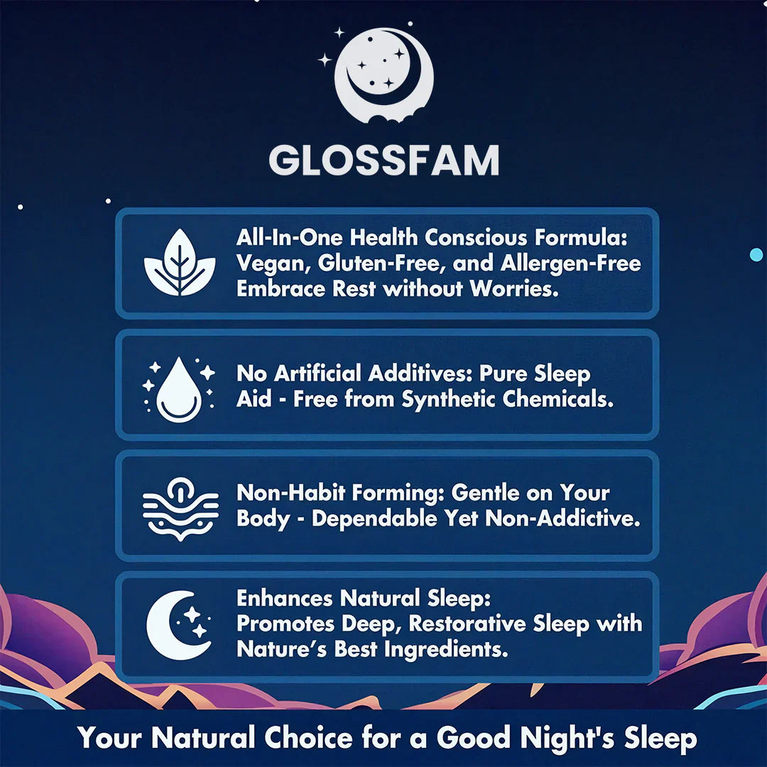 Join thousands who have improved their nights with GlossFam Sleep Gummies — your go-to for falling asleep faster, staying asleep longer, and waking up refreshed. Made with natural ingredients, these gummies help you relax, recharge, and feel your best every day.