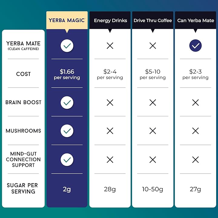 Yerba Magic Mate is an instant Yerba Mate tea powder designed to provide clean, sustained energy without crashes. It combines the power of Yerba Mate with brain-boosting Lion’s Mane, calming L-Theanine, and gut-supporting prebiotics and probiotics. Enjoy a smooth, jitter-free boost for mental clarity, digestion, and overall well-being in a quick and easy mix.