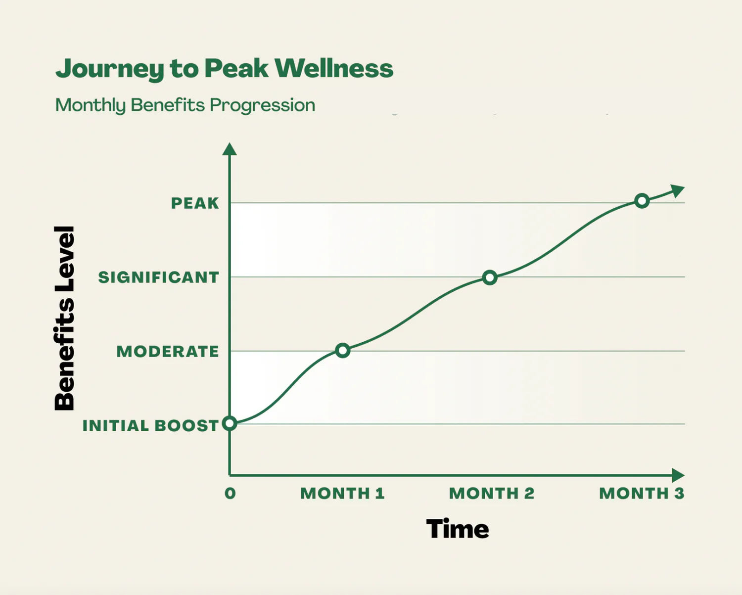 Many users report noticeable improvements in energy and stamina within a few weeks of consistent use. Results may vary depending on individual body chemistry